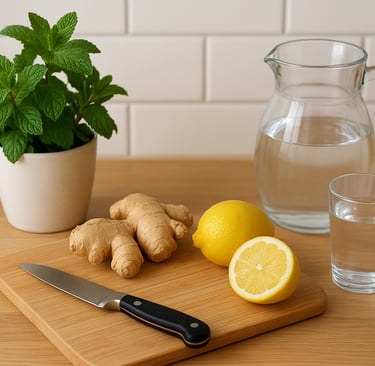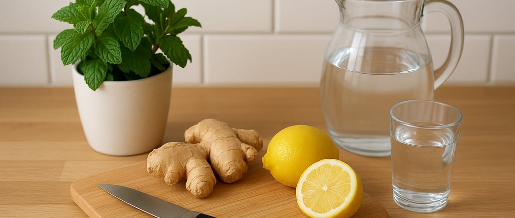 Naturheilkundliche und sanfte Behandlungsmöglichkeiten : 🔸 Ingwer : Studien zeigen, dass Ingwerwurzel ( z.B. als Tee oder in Kapseln ) die Übelkeit deutlich lindern kann 🔸 Akupressur : Besonders der Punkt Nei-Guan (P6) am Handgelenk hat sich als wirksam erwiesen 🔸 Aromatherapie : Zitronen-, Bergamotte- oder Lavendelöl können wohltuend wirken, wenn sie vorsichtig eingesetzt werden.